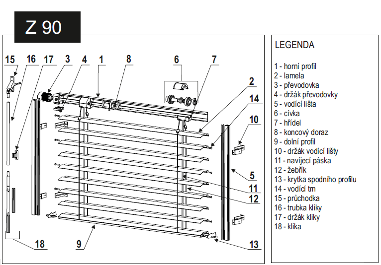Pro nadrozměrné žaluzie zastiňující velké plochy se vkládá do horního profilu převodovka a spolu sní nekonečný řetízek.
